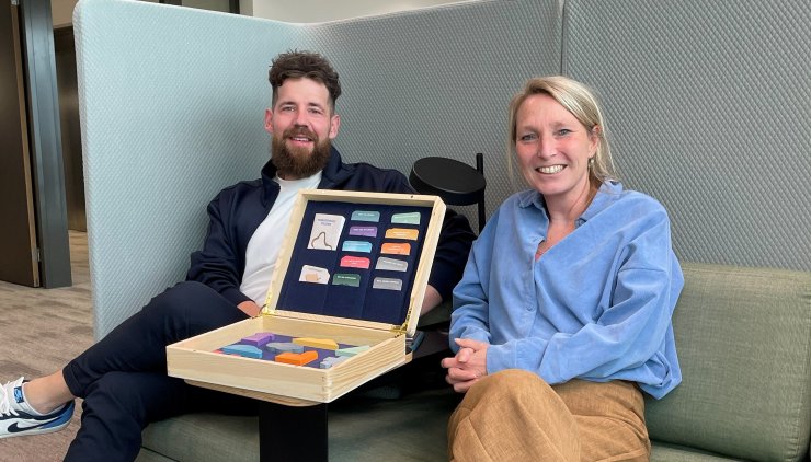 Het spel is ontwikkeld door oud Industrial Design-student Myrthe. ‘Haar idee was om iets te ontwikkelen rondom stress, op een creatieve niet-klinische manier. Dus vanuit de ontwerpgedachte en niet vanuit de psychologie’, vertelt Eveline. Het spel wordt inmiddels aangeboden door Geert Kruijswijk onder de noemer ‘Navigating Stress’. Het doel van het spel? Samen met een begeleider en je collega’s je stresspatronen herkennen én onderzoeken wat je nodig hebt om er mee om te gaan óf er je voordeel mee te doen.